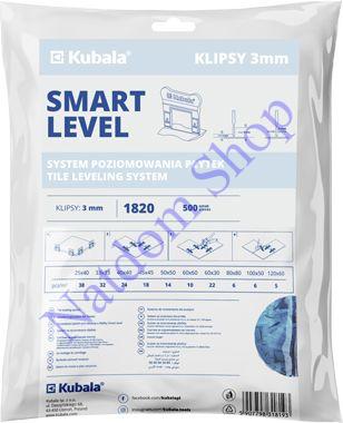 Professzionális 3.0 mm-es Kubala Smart Level clips csempeszintező rendszerhez. XXL kiszerelés – 500 darab, tökéletes széles fugákhoz.