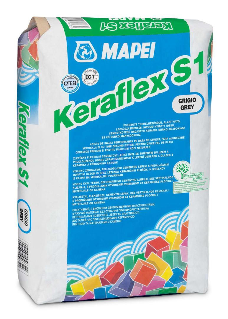 Mapei Keraflex S1 a professzionális ragasztók új szintjét képviseli. Ez a fokozott terhelhetőségű cementkötésű ragasztó kiválóan alkalmas bármilyen típusú kerámia burkolólap, kerámiamozaik és nem érzékeny kőlap ragasztására. Egyedülálló alakíthatósága és lecsúszásmentes tulajdonsága lehetővé teszi, hogy még a legösszetettebb burkolási munkák is könnyedén kivitelezhetők legyenek.