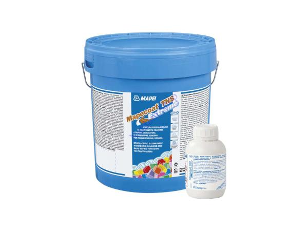 Kétkomponensű, gyors száradású, vizes diszperziós epoxi-akril bevonat felületek tartós bevonatának kialakításához, beleértve a járműforgalommal terhelt felületeket is.