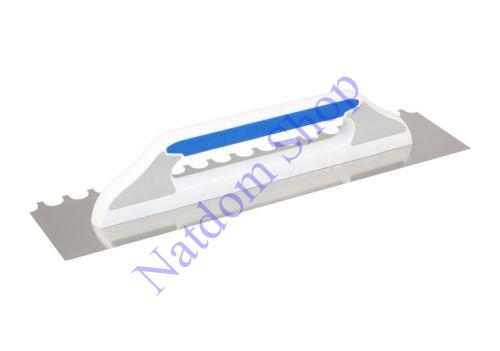 Kubala rozsdamentes acél glettvas ergonomikus nyéllel, félköríves fogazással. Ideális csemperagasztók és burkolóanyagok precíz eloszlatásához.